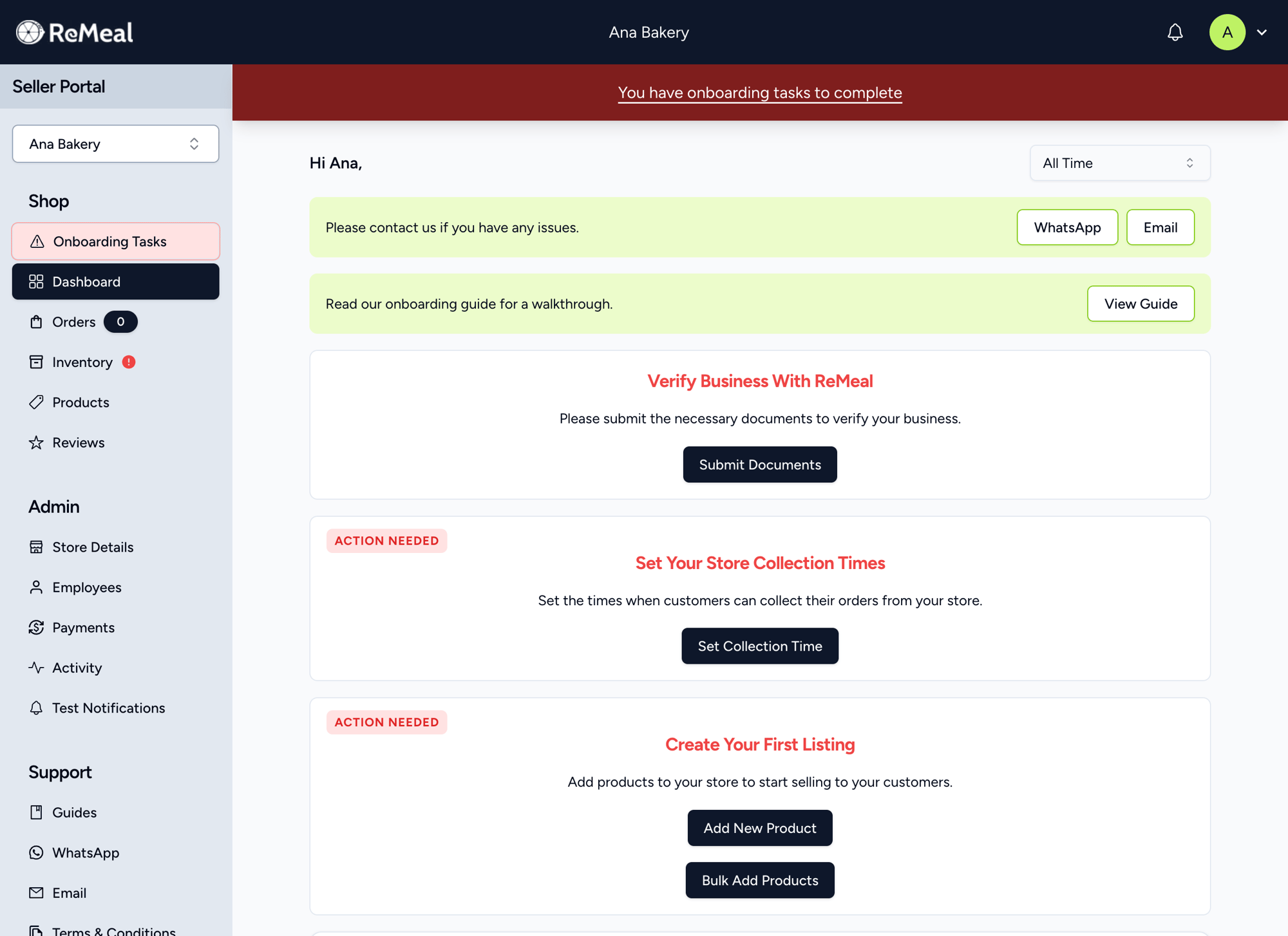 Once ReMeal has verified your business, you will receive an email. In the meantime, you are able to manage your store, such as adding products, setting up employee access, and setting your collection times.